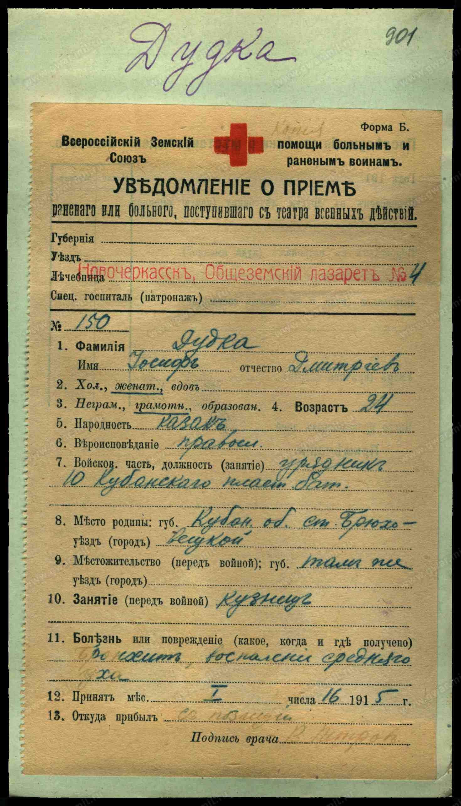 Дудка Стефан мед.ф. Брюховецкая 1 Черноморский конный полк